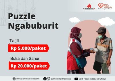 Yuk! Lebih dekat Mengenal Program Puzzle Ngabuburit. Puzzle Ngabuburit merupakan program yang di dalamnya mencakup kepedulian kita untuk bahagiakan mereka yang membutuhkan dengan berbagi Ta'jil, Buka & Sahur puasa Ramadhan.