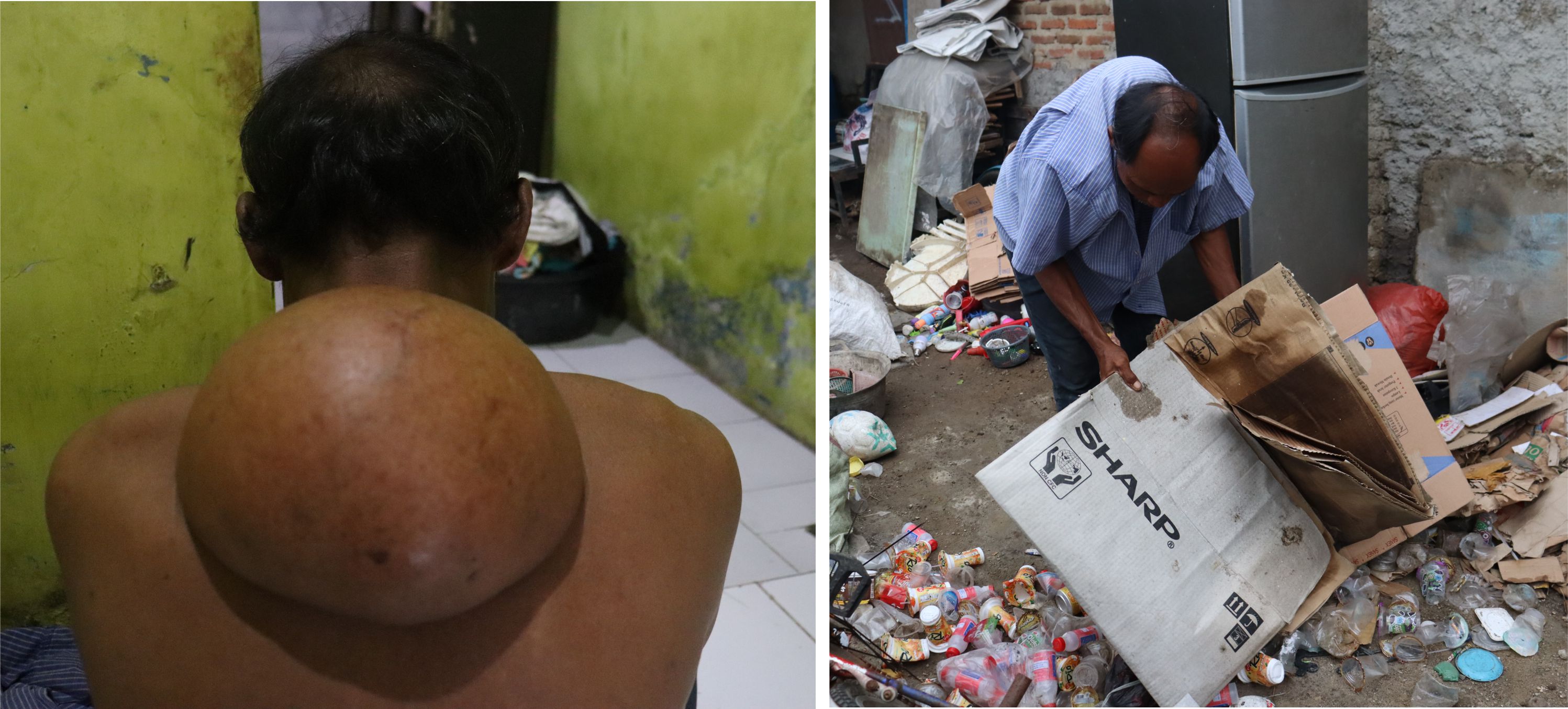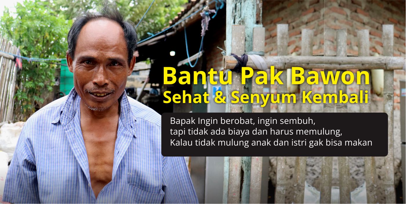 Pak Bawon (55) merupakan seorang ayah 4 anak yang menjadi tumpuan utama keluarganya dan 1 anak yang sudah meninggal. Pemulung adalah mata penghidupanya, tetapi pekerjaan beliau hanya memulung dengan penghasilan tidak menentu dan jangkauan jarak yang terbatas karena sakit tumor yang kian lama kian terasa sakitnya. Kondisi tempat tinggalnya juga apa adanya dengan ruangan sempit yang berada di pojok desa.